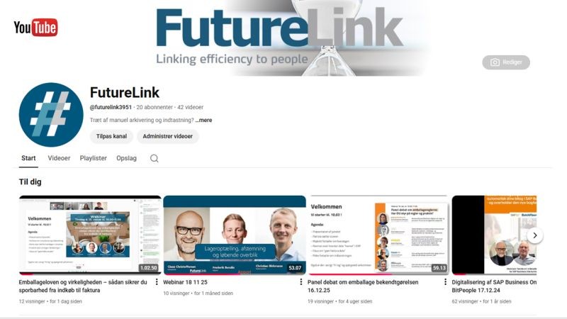 Vil du holde dig opdateret på markedsindsigter, produktnyheder og løsninger i praksis? Så tag et kig på FutureLinks YouTube-kanal. På kanalen finder du:– Produktpræsentationer og nyheder– Markeds- og compliance-relateret indhold–
